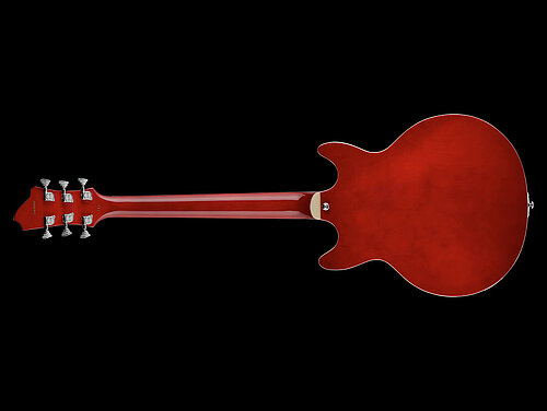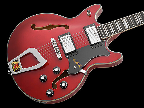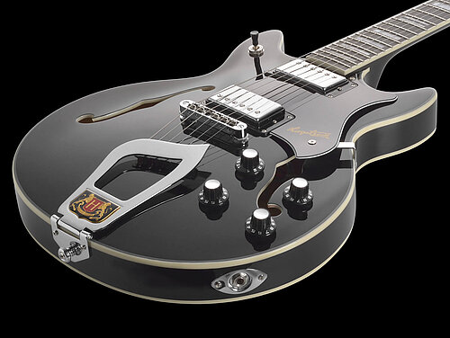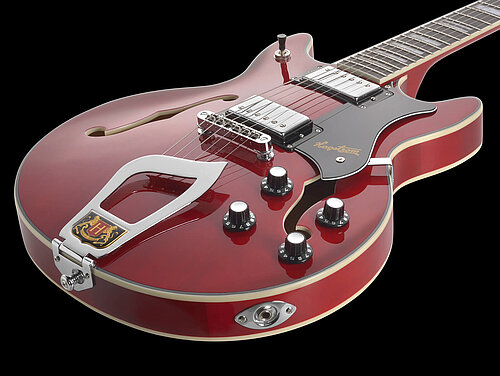 Wie die größere Klinge, die Viking, besitzt die Alvar einen Double-Cut-Semi-Hollow-Body aus laminiertem Ahorn samt eingeleimten Ahornhals (22 Bünde, kurze 24.75’-Mensur), dazu die in vielen Scharmützeln bewährten HJ50-Humbucker mit einem Klang zwischen vollmundigem Wikingerbier und transparent-kalter Nordluft. Die R/C-Schaltung der beiden Volumenpotis sorgt bei niedriger Lautstärke für friedliche Töne und bei höheren Werten für Kampfbereitschaft – je nach Stimmung, die man sogar blitzschnell umschlagen lassen kann.