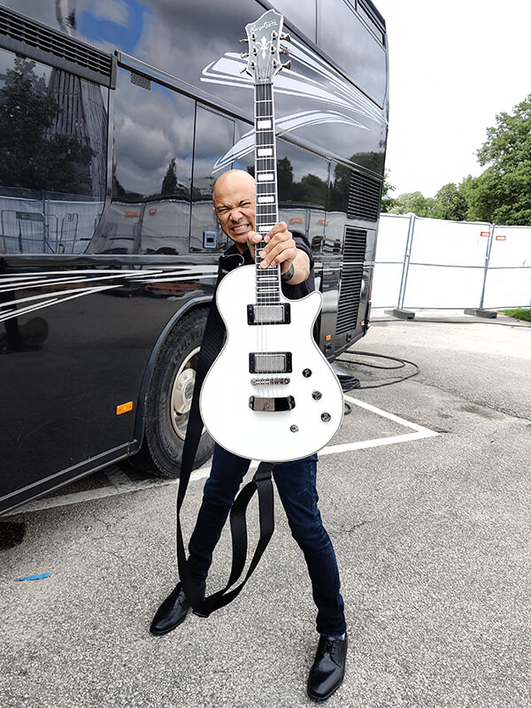 Nach einem energiegeladenen Auftritt hatten wir die Freude, mit unserem großartigen Freund Danko Jones abzuhängen. Beim Uport Musikfestival in Ulricehamn, Schweden, hat er das Publikum mit seinen Ultra Max Gitarren und seiner Show beeindruckt. Danko hat seiner Sammlung einige neue Hagstrom-Schätze hinzugefügt, darunter die Ultra Max Limited Editions, mit denen er auf den Bildern zu sehen ist. Es war toll, Zeit mit unseren kanadischen Freunden zu verbringen, während sie auf ihrer Europa-Tour unterwegs sind! Beide Ultra Max Modelle kannst du weiterhin bei ausgewählten Hagstrom Fachhändlern finden.
