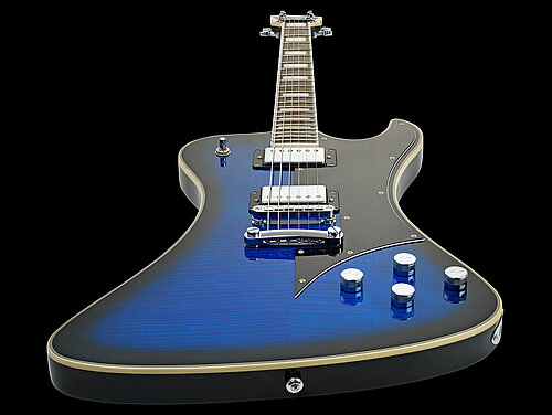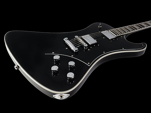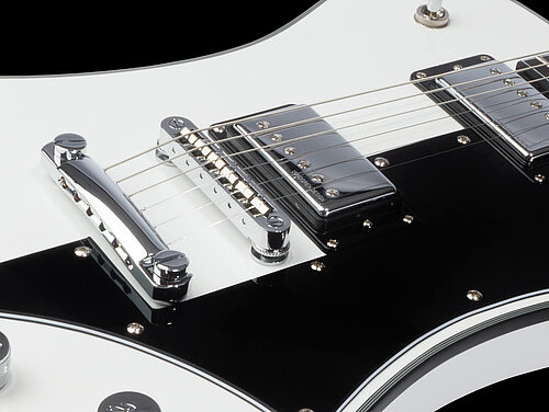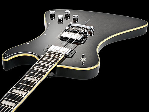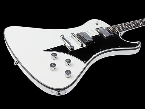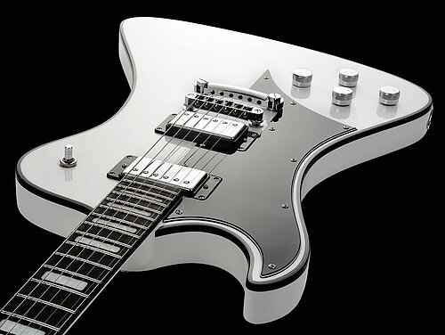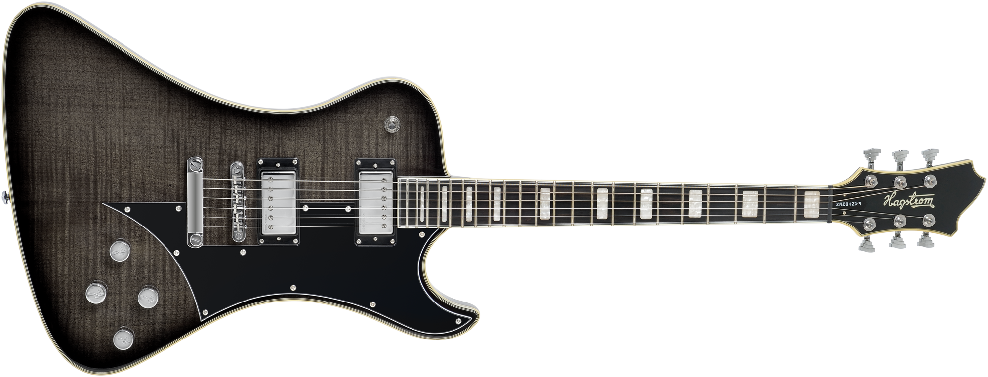 A collaboration between the design team at Hagstrom and the Swedish band Ghost, Fantomen (Swedish for “The Phantom”) transports Hagstrom’s legendary playability and technical excellence into a new, edgier realm. We started with an elegantly asymmetrical solid-mahogany body to which we have joined a mahogany neck using our classic mortise-and-tenon neck joint system. Of course, since it’s a Hagstrom, the Fantomen uses our H-Expander® truss rod and Resinator® fingerboard, providing the ultimate in playing surface stability and optimal tonal enhancement. Together these components create an incredibly stable, resonant and responsive sonic foundation.