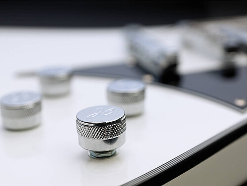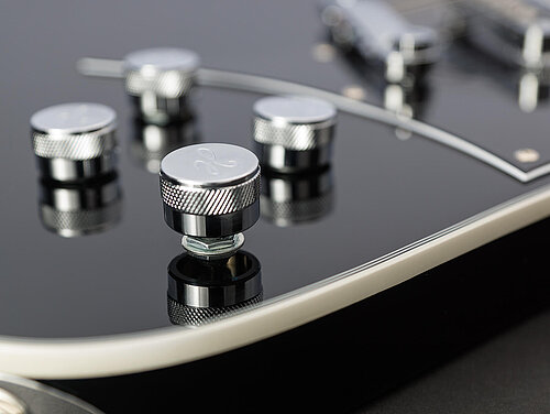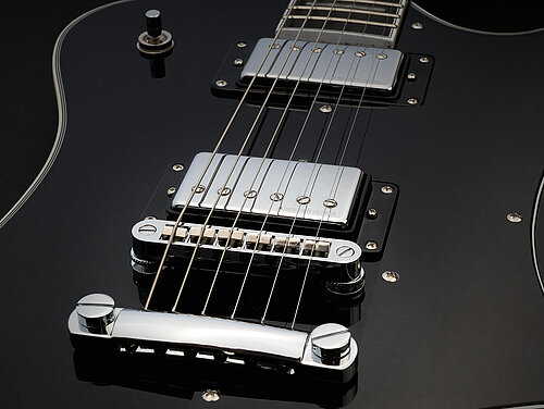 Our goal was to equip the Fantomen with electronics that would allow for a varied tonal palette ranging from classic, vintage colors to screaming metallic brilliance. We worked with Swedish pickup guru Johan Lundgren, designer of pickups used by artists such as Meshuggah’s Martin Hagström (no relation!). Lundgren recommended two different humbucker designs: No. 2 in the neck position and No. 5 in the bridge position. The result covers an immense expressive range; from smooth, warm tones to the kind of attack and intense dynamic output that would satisfy the demands of even the most extreme musical styles. Each pickup can be split to single-coil mode by means of push/pull switches incorporated into the tone controls for even more sonic flexibility. This guitar speaks with many distinct voices.