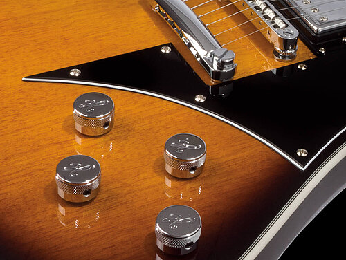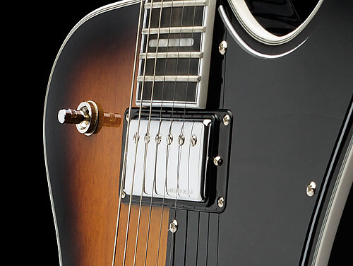 Resinator™ wood is a wood composite material that is both more uniform in density and more stable than any standard wood product. These characteristics eliminate dead spots or “wolf tones” sometimes associated with conventional wood fingerboards. Resinator™ wood has an articulate sound similar to high quality ebony, but without any of the problems associated with ebony. It provides a stable and clear tone, and also adds higher overtones and harmonics which uniquely detail each note. Like our H-Expander™ truss rod, Resinator™ wood is a major contributor to the distinctive “Hagstrom tone”.
