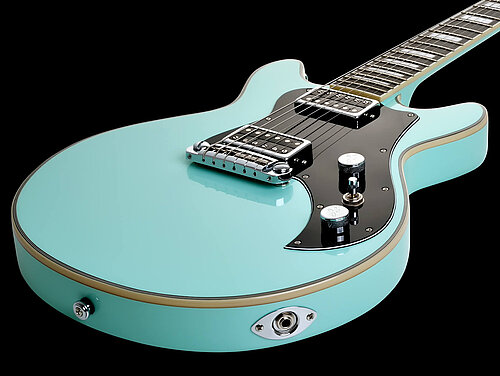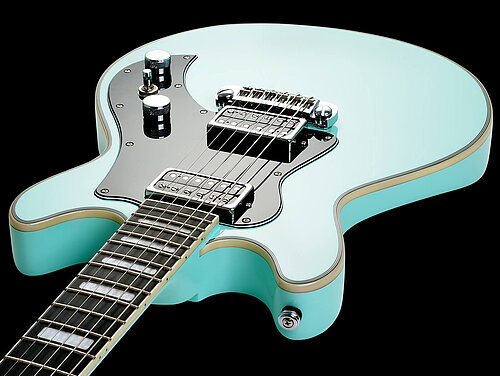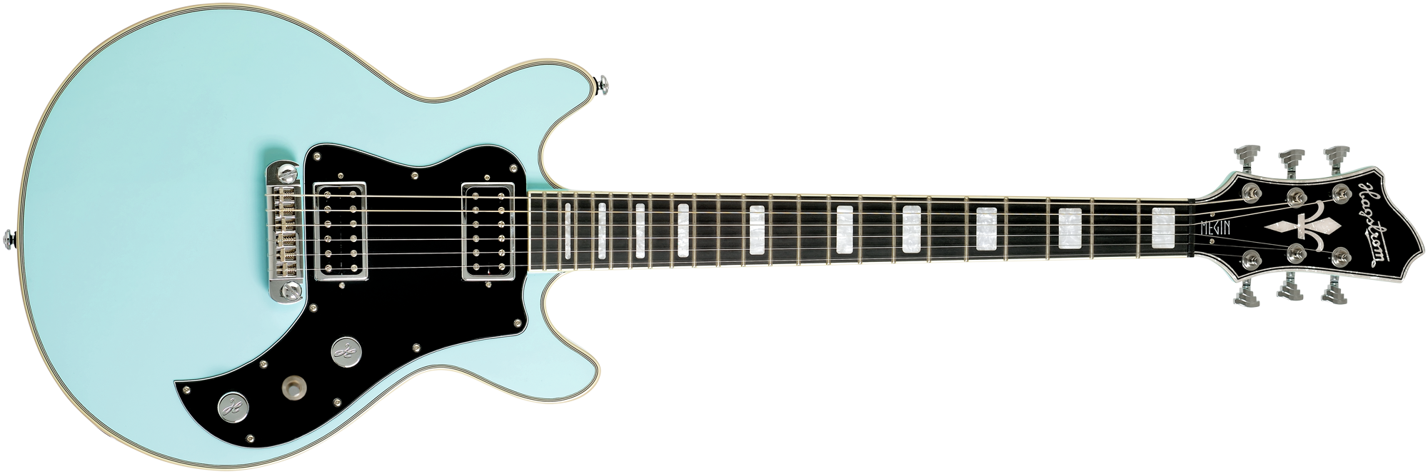 Resinator™ wood is a wood composite material that is both more uniform in density and more stable than any standard wood product. These characteristics eliminate dead spots or “wolf tones” sometimes associated with conventional wood fingerboards. Resinator™ wood has an articulate sound similar to high quality ebony, but without any of the problems associated with ebony. It provides a stable and clear tone, and also adds higher overtones and harmonics which uniquely detail each note. Like our H-Expander™ truss rod, Resinator™ wood is a major contributor to the distinctive “Hagstrom tone”.