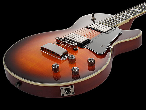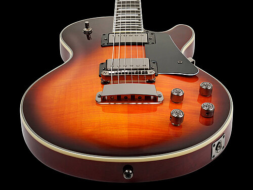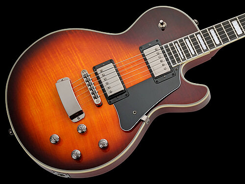 The long scale (25,5"/648mm) combined with individual coil split of the pickups via push/pull potentiometers of the tone controls, provides a variety of convincing, crisp single coil sounds, as well as the obligatory humbucker onslaught. Q-Parts "Vine" potentiometer knobs and the black chrome hardware tastefully round off the finish.