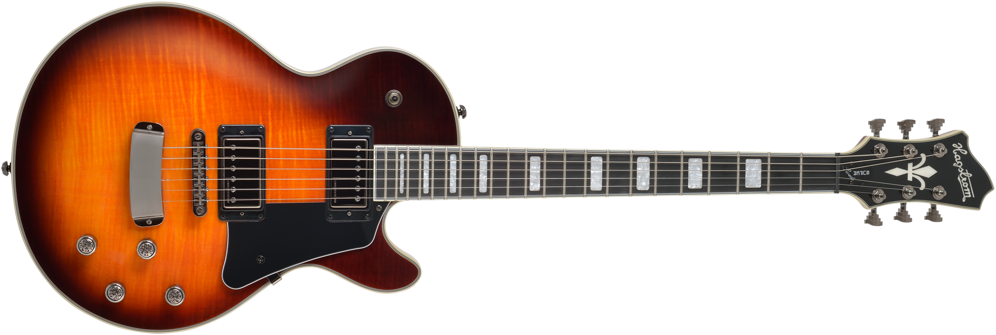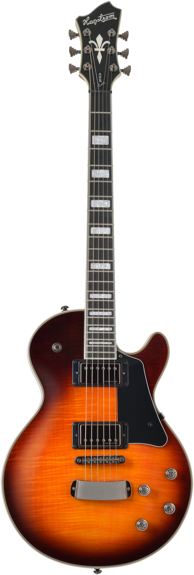 The single cut classic of the Hagstrom range in a truly exquisite limited edition "feisty" double coil pickup pair with the Lundgren design #02 on the neck and #05 on the bridge, merge to create a visual and as well as sonic dream pairing.