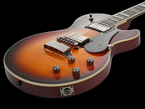 The short scale length (24.75"/628 mm) combined with individual coil split of the pickups via push/pull potentiometers of the tone controls, provides not only the popular, "massive humbucker tone" single cuts are usually known for, but also a variety of convincing, crisp single coil sounds. Q-Part's "Vine" potentiometer knobs and black chrome hardware tastefully round off the finish.