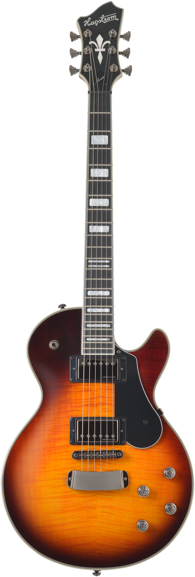 The single cut classic of the Hagstrom range in a truly exquisite limited edition. Here, the beguilingly beautiful Tiger Burst finish with strikingly figured flame maple top, as well as the "feisty" double coil pickup pair with the Lundgren Design #02 on the neck and #05 on the bridge, merge into a visual, as well as sonic dream pairing.