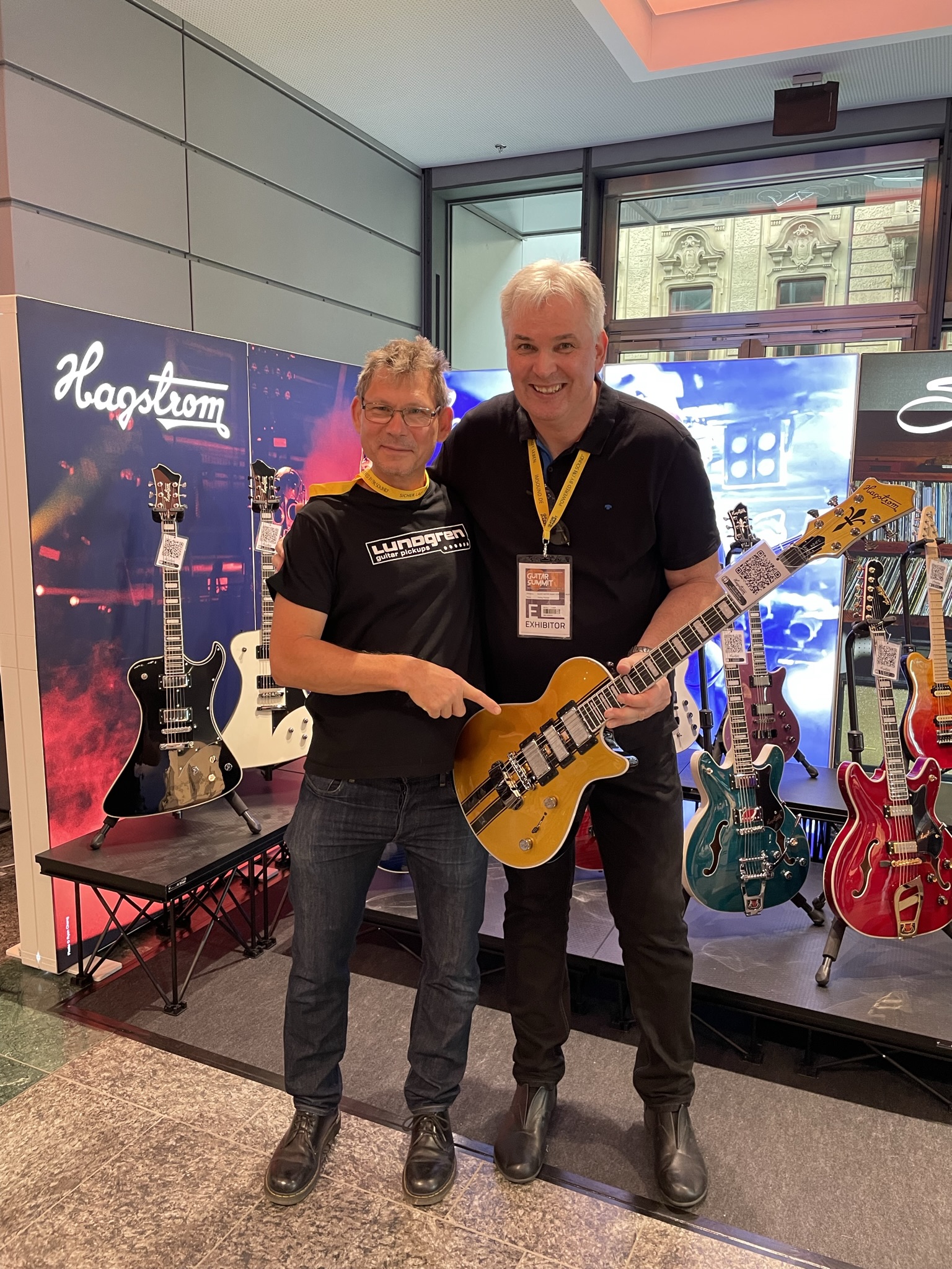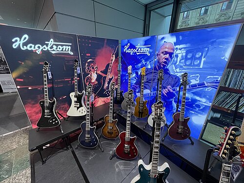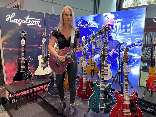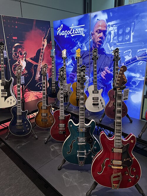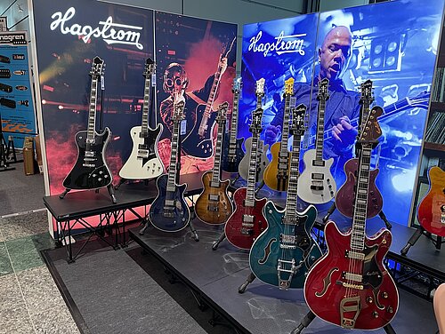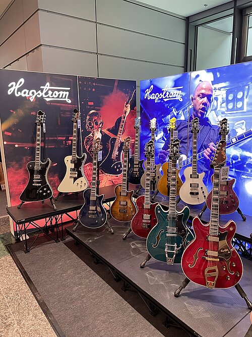Visit us in Mannheim at the MCON Exhibition Center on Rosengartenplatz 2, where we will be present at Stand Level 0 Number 108 from September 22nd to 24th. We have exciting news prepared, including the latest generation of Swede and Super Swede Singlecut models. Of course, we are also bringing along a fantastic selection of Hagstrom instruments. It's a good idea to secure your tickets now and join us! We're looking forward to seeing you. As an appetizer, here are a few shots from last year's event: